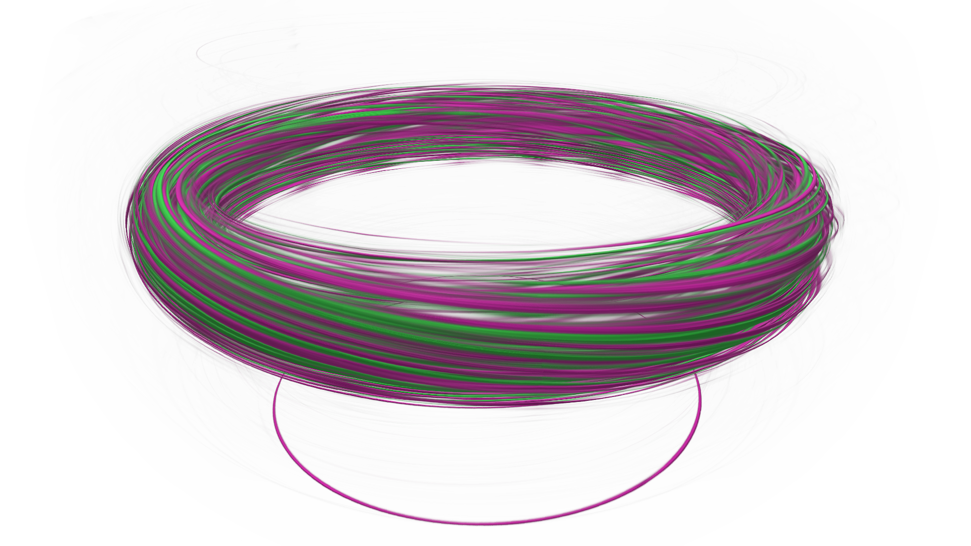 In figure 1-(f), we have rendered the lowpass and the highpass together. Compared to figure 1-(a), it is much easier to identify the intertwined bandpass behavior in the dataset.